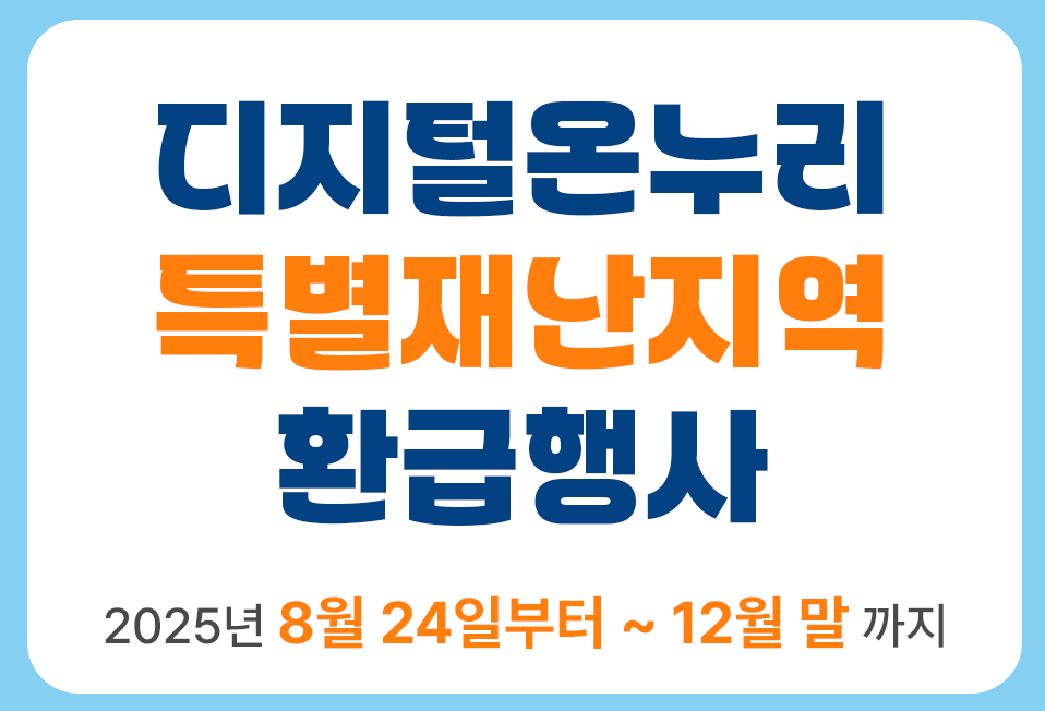 디지털온누리 특별재난지역 환급행사는 2025년 8월 24일(일)부터 12월 말까지 진행됩니다.