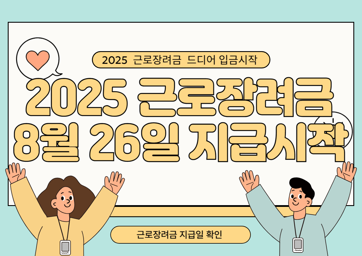 1️⃣ 2025년 정기 근로장려금, 8월 26일(화)부터 순차적으로 지급됩니다!