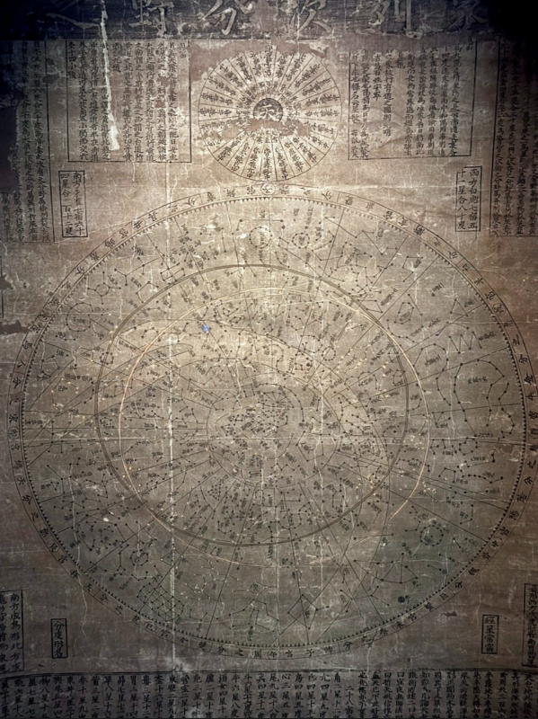 천문도는 전통적인 중국의 우주관인 삼원이십팔수(三垣二十八宿)에 따라 하늘을 구분해 총 1,467개의 별이 새겨져 있다. 원반형 천문도 중심은 천구의 북극이다. 중심에 있는 별자리가 자미원으로 하늘의 황제가 거처하는 곳이다. 주위의 태미원은 황제의 신하가 사는 곳, 천시원은 백성이 사는 곳이다. 방사선 모양으로 하늘을 28개로 구분하고 있는데 이를 이 십팔수라 한다. 천문도 안에는 4개의 원이 그려져 있다. 중앙의 작은 원은 내규로 한양에서 일 년 내내 볼 수 있는 주극성 영역이다. 내규 밖으로 서로 엇갈린 두 개의 원은 하늘의 적도와 태양이 일 년 동안 운행하는 황도다. 황도 위를 운행하는 태양의 위치에 따라 계절을 알 수 있다. 가장자리 원은 외규로 조선의 한양에서 볼 수 있는 모든 별의 한계를 표시한 것이다.