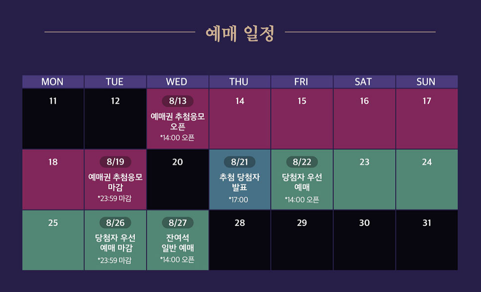 예매권 추첨 응모 : 2025. 8. 13.(수) 14:00 ~ 8. 19.(화) 23:59 / 7일간